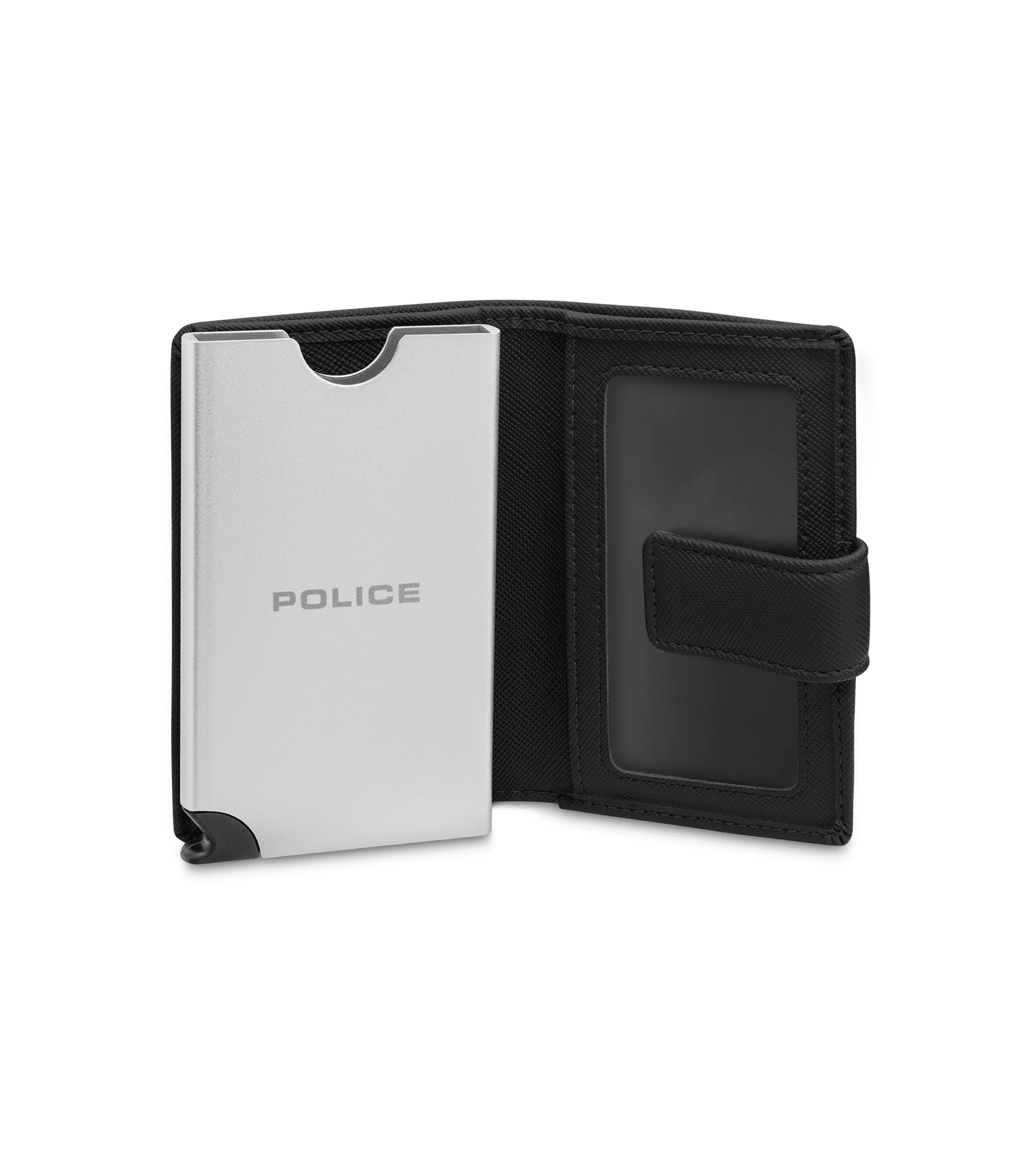 Police Automatic Card Case in Black Vegan Leather For Men